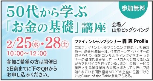 2月28日(土)開催【参加無料】50代から学ぶ「お金の基礎」講座